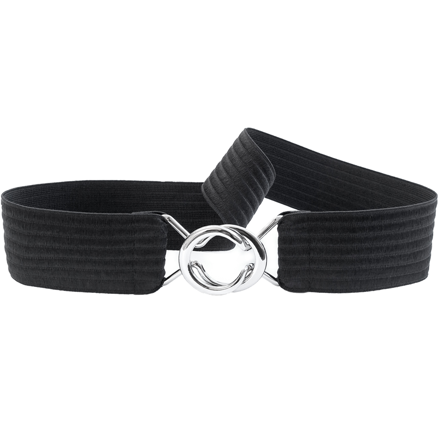 Bredt sort elastikbælte med smuk sølvspænde – Bredt sort taljebælte